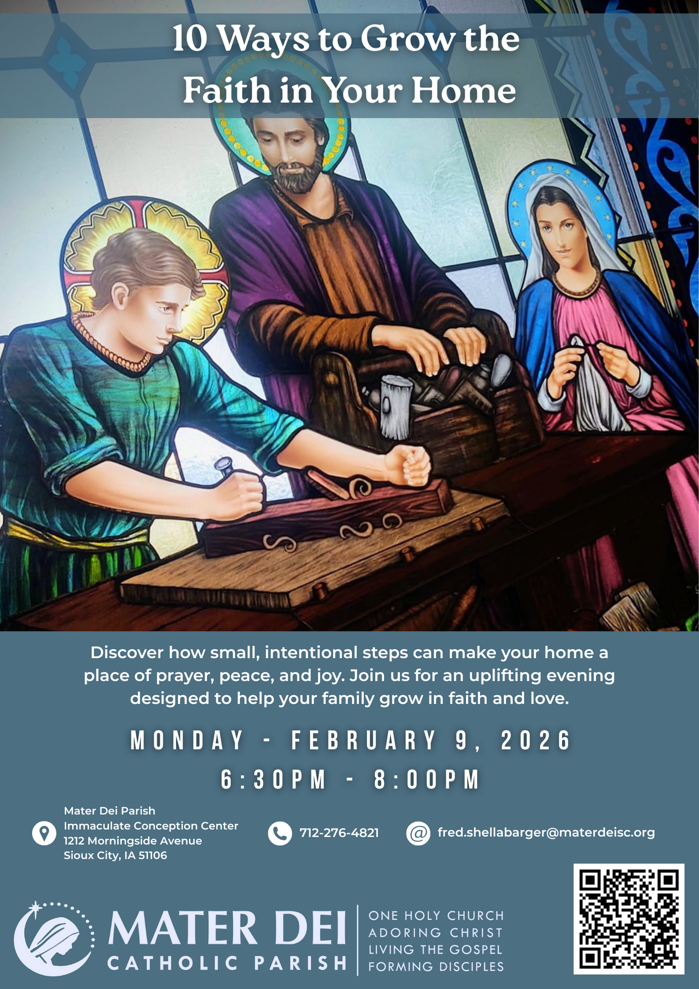 Join Mater Dei Parish on Monday, Feb. 9 at 6:30 pm. at the Immaculate Conception Parish Center, 1212 Morningside Avenue, Sioux City.