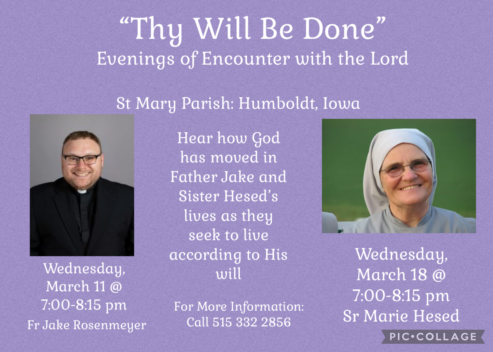 For more information, contact the parish at (515) 332-2856.