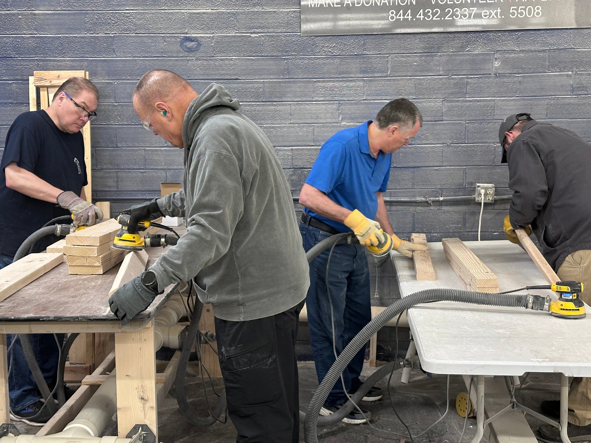 Cover photo - Deacon Hector Mora sanding lumber at Sleep in Heavenly Peace.