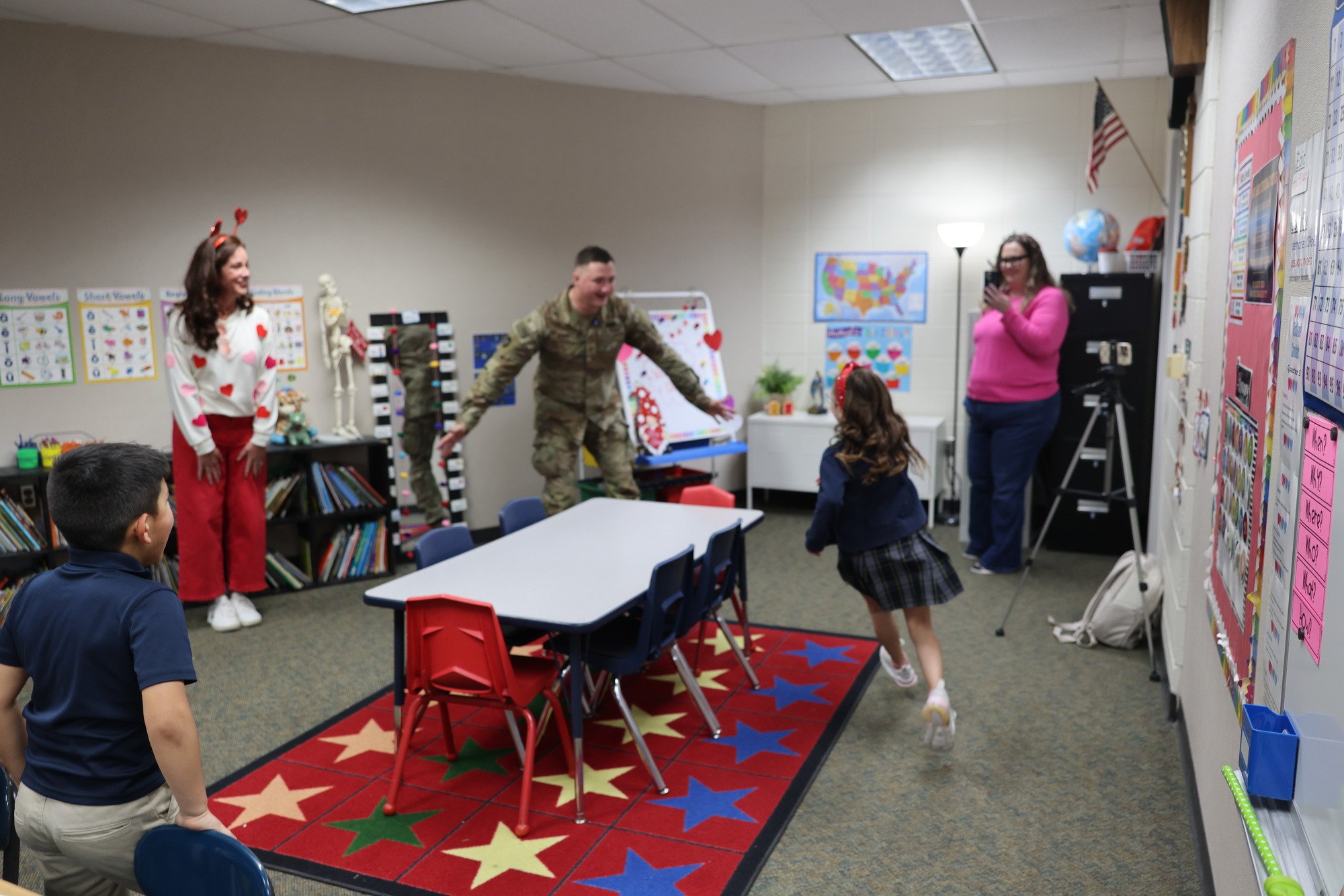 Oakley Hoch, a first grader at Sacred Heart School in Sioux City, had one of the best days she has had in a very long time. Oakley has not seen her father since May 2025, when he was deployed. During her classroom Valentine’s Day celebration, she was surprised by his return home.