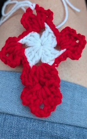 Crocheted cross a group that makes prayer shawls and crocheted crosses. For Jacobsen, she likes to make crosses which she gives away.“There is a table at church and I have crosses there and I put them everywhere – wherever I am led. I figure God leads whoever is supposed to get the cross to it,” she said.