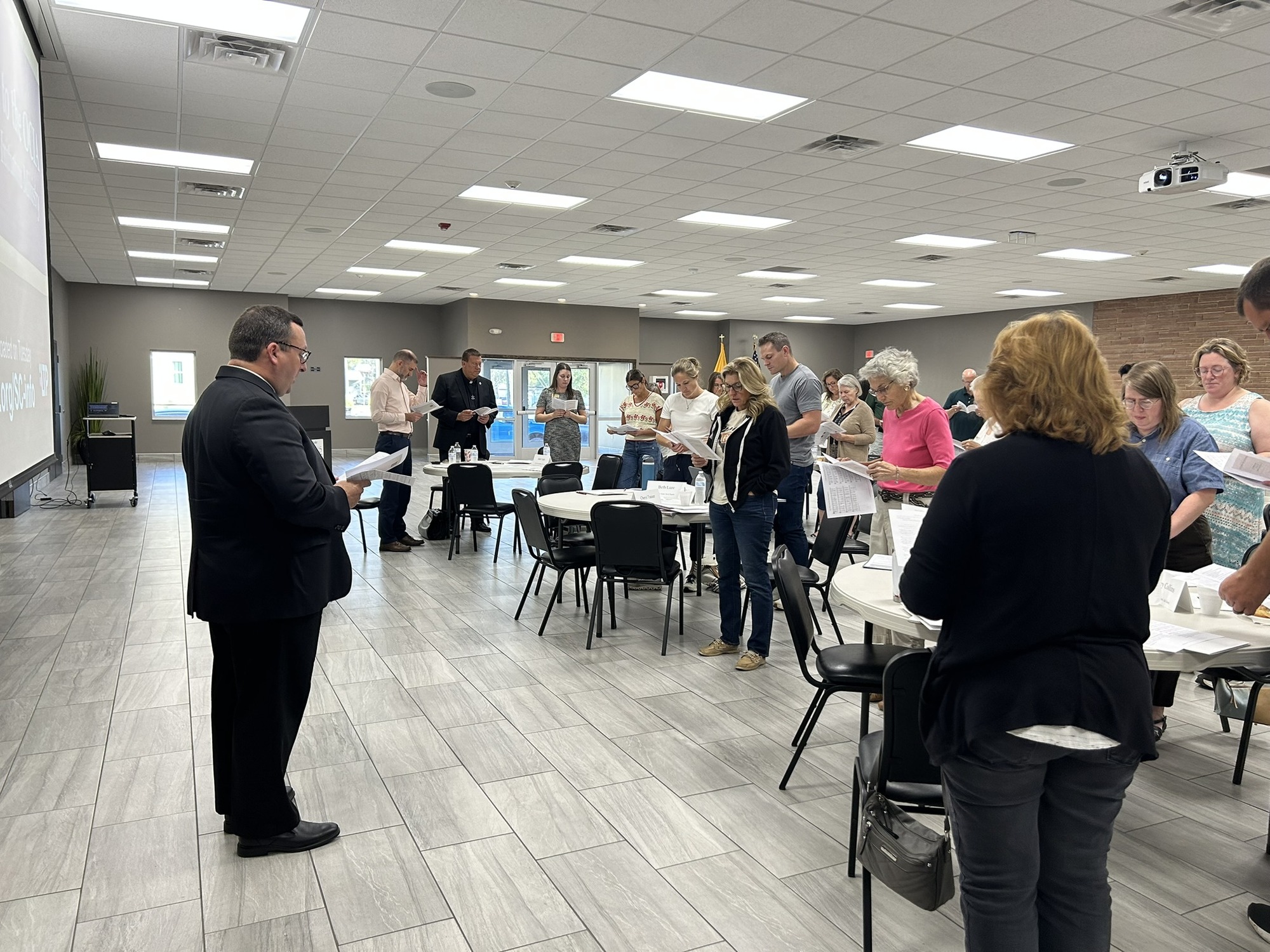 Recognizing that the OCIA is a liturgical rite, Bower said they not only hope that the parishesFather Andrew Galles leads morning prayer. will incorporate more of the rites along the way, but she found “the presenters offered a great vision that this process is not just a classroom experience for those entering the church. They are really invited into the parish community as a whole because at the end of the day the mission of a baptized Catholic is evangelization – spreading the Gospel, accompanying who are seeking the truth and inviting them into the Catholic faith.”