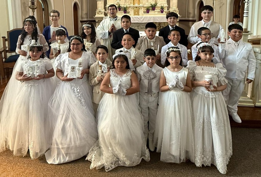 First Communion at St. Mary with Sister Jodie and Father Mauro SánchezSister Jodie said she has been pleased to see the Hispanic children of the parish thriving in the school system both academically and in extracurricular activities such as athletics. Although the parish is now majority Spanish-speaking, the community of Rock Valley is home to mostly English-speaking Anglo residents.