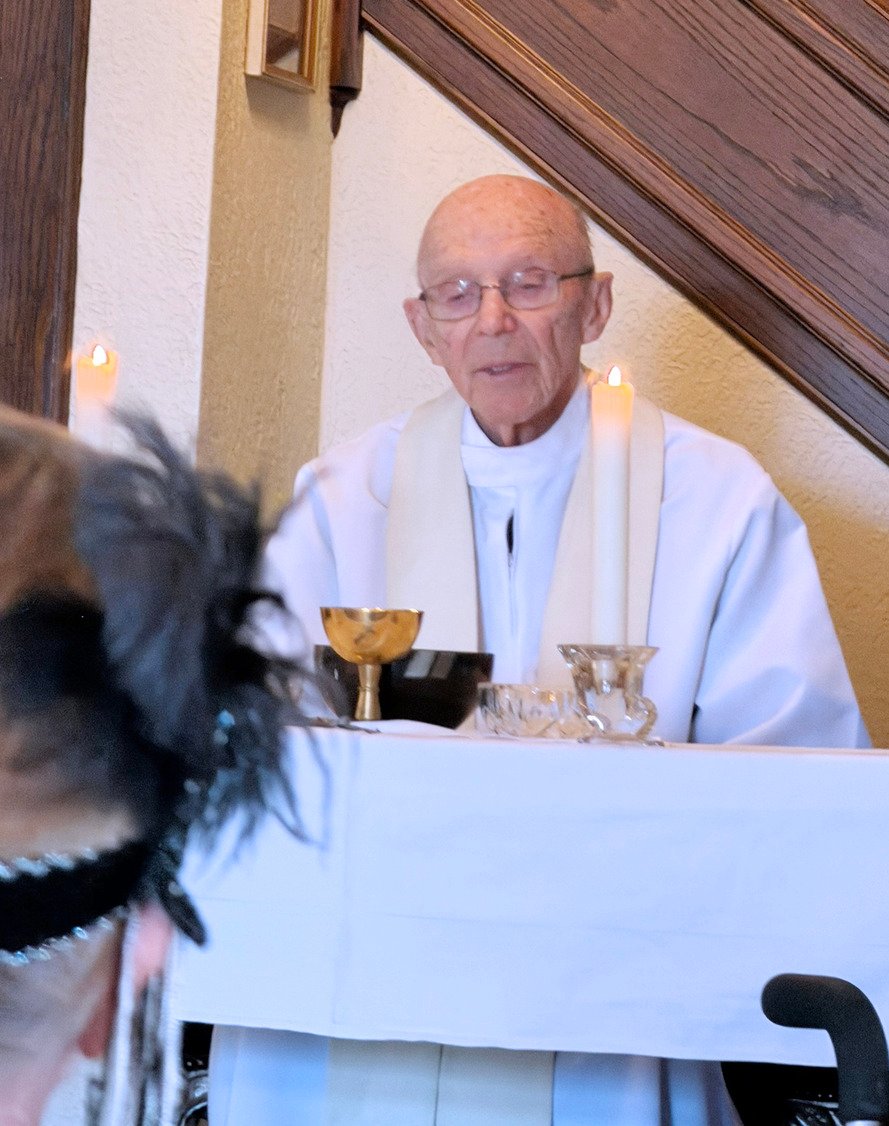 Father Linnan celebrates Mass for the 100th anniversary of the St. Therese Study Club.